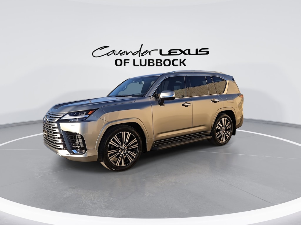 Features: Accessory Package, Luxury Package, Black Semi Anil Leather, 10-Way Heated and Ventilated Front Bucket Seats, 3rd row seats: split-bench, 4-Wheel Disc Brakes, ABS brakes, Adaptive suspension, Air Conditioning, All-Weather Cargo Mat, All-Weather Floor Liners - Off Road, Alloy wheels, AM/FM radio: SiriusXM, Apple CarPlay/Android Auto, Auto High-beam Headlights, Auto tilt-away steering wheel, Auto-dimming door mirrors, Auto-dimming Rear-View mirror, Auto-leveling suspension, Automatic temperature control, Black Emblem Overlays, Brake assist, Bumpers: body-color, Compass, Delay-off headlights, Driver door bin, Driver vanity mirror, Dual front impact airbags, Dual front side impact airbags, Electronic Stability Control, Emergency communication system: Safety Connect (5-year minimum), Exterior Parking Camera Rear, Front anti-roll bar, Front Bucket Seats, Front Center Armrest, Front dual zone A/C, Front fog lights, Front reading lights, Front wheel independent suspension, Fully automatic headlights, Garage door transmitter: HomeLink, Genuine wood console insert, Genuine wood door panel insert, Headlight cleaning, Heads-Up Display, Heated door mirrors, Heated front seats, Heated rear seats, Heated steering wheel, Illuminated entry, Leather Shift Knob, Leather steering wheel, Lexus Interface with 12.3" Touchscreen Display, Low tire pressure warning, Mark Levinson 25-Speaker Premium Surround Sound, Memory seat, Navigation System, Occupant sensing airbag, Outside temperature display, Overhead airbag, Overhead console, Panic alarm, Passenger door bin, Passenger vanity mirror, Power door mirrors, Power driver seat, Power Liftgate, Power moonroof, Power passenger seat, Power steering, Power windows, Radio data system, Radio: Mark Levinson 25-Speaker Surround Sound System, Rain sensing wipers, Rear air conditioning, Rear dual zone A/C, Rear reading lights, Rear seat center armrest, Rear side impact airbag, Rear window defroster, Rear window wiper, Reclining 3rd row seat, Remote keyless entry, Security system, Semi-Aniline Leather Seat Trim, Side Puddle Lamp, Speed control, Speed-sensing steering, Split folding rear seat, Spoiler, Steering wheel memory, Steering wheel mounted audio controls, Tachometer, Telescoping steering wheel, Tilt steering wheel, Traction control, Trip computer, Turn signal indicator mirrors, Variably intermittent wipers, Ventilated front seats, Ventilated rear seats, Voltmeter, and Wheels: 22" Forged Alloy with Machined Finish.